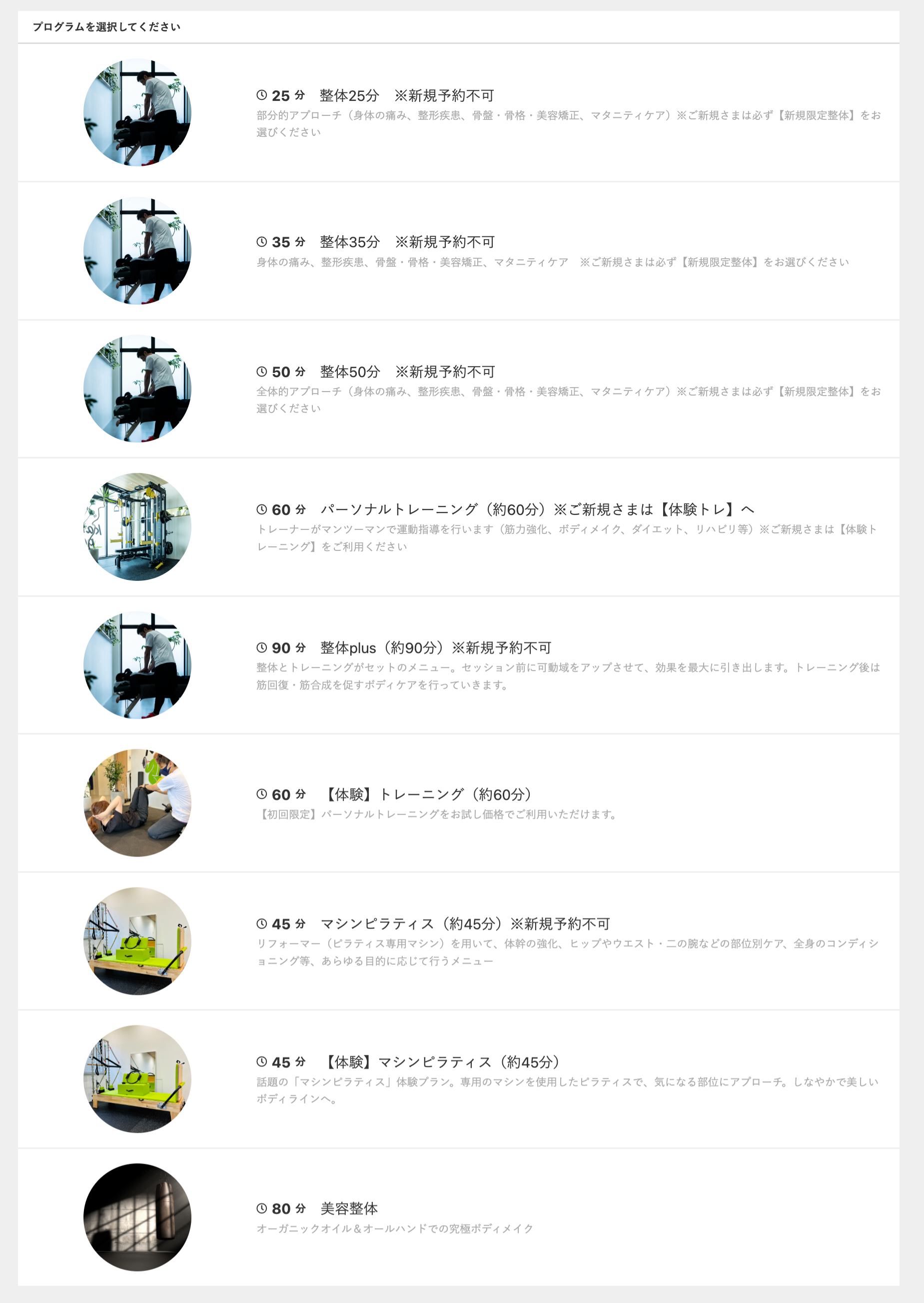 サービスは、整体、パーソナルトレーニング、整体プラス(整体+リハビリ的なトレーニング)の3つからスタートして、2年前にマシンピラティスを追加。それとは別に、ジムエリアを月額で利用できるサブスクリプションプランがあります。お客様は「整体のみ」「ジムのみ」「両方利用」など、多様な形で利用されています。.png)